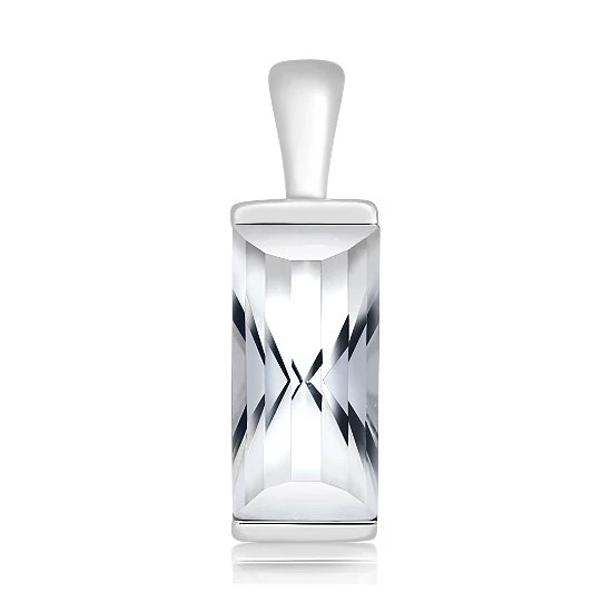 Stříbrný přívěsek zdobený vzácným kamenem quartz. Celková váha šperku včetně kamene činí 3,7 g, z čehož váha kamene je 4,1 ct. Jeho rozměry jsou 1,5 x 0,8 x 0,7 cm plus provlékací očko. Sbalit popis