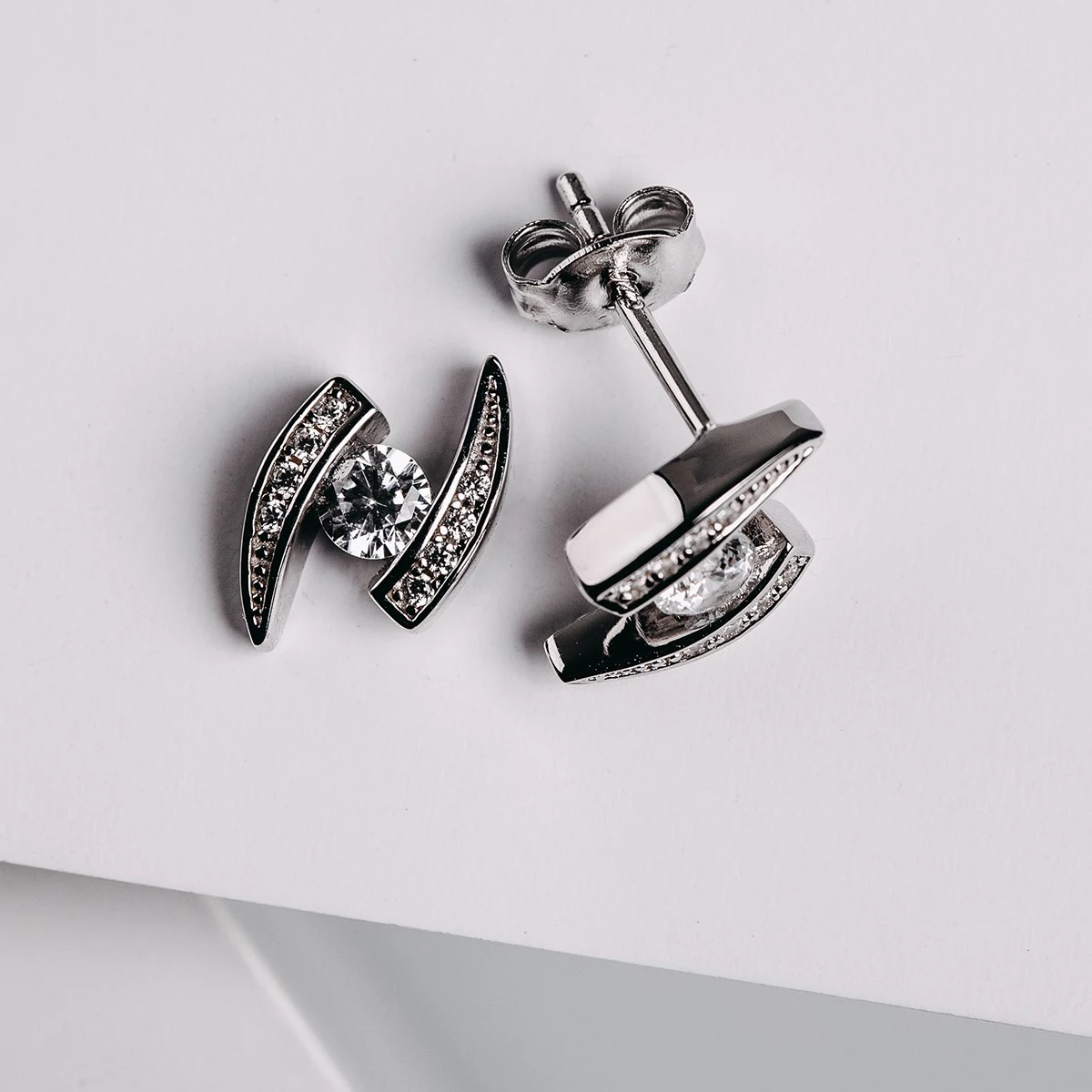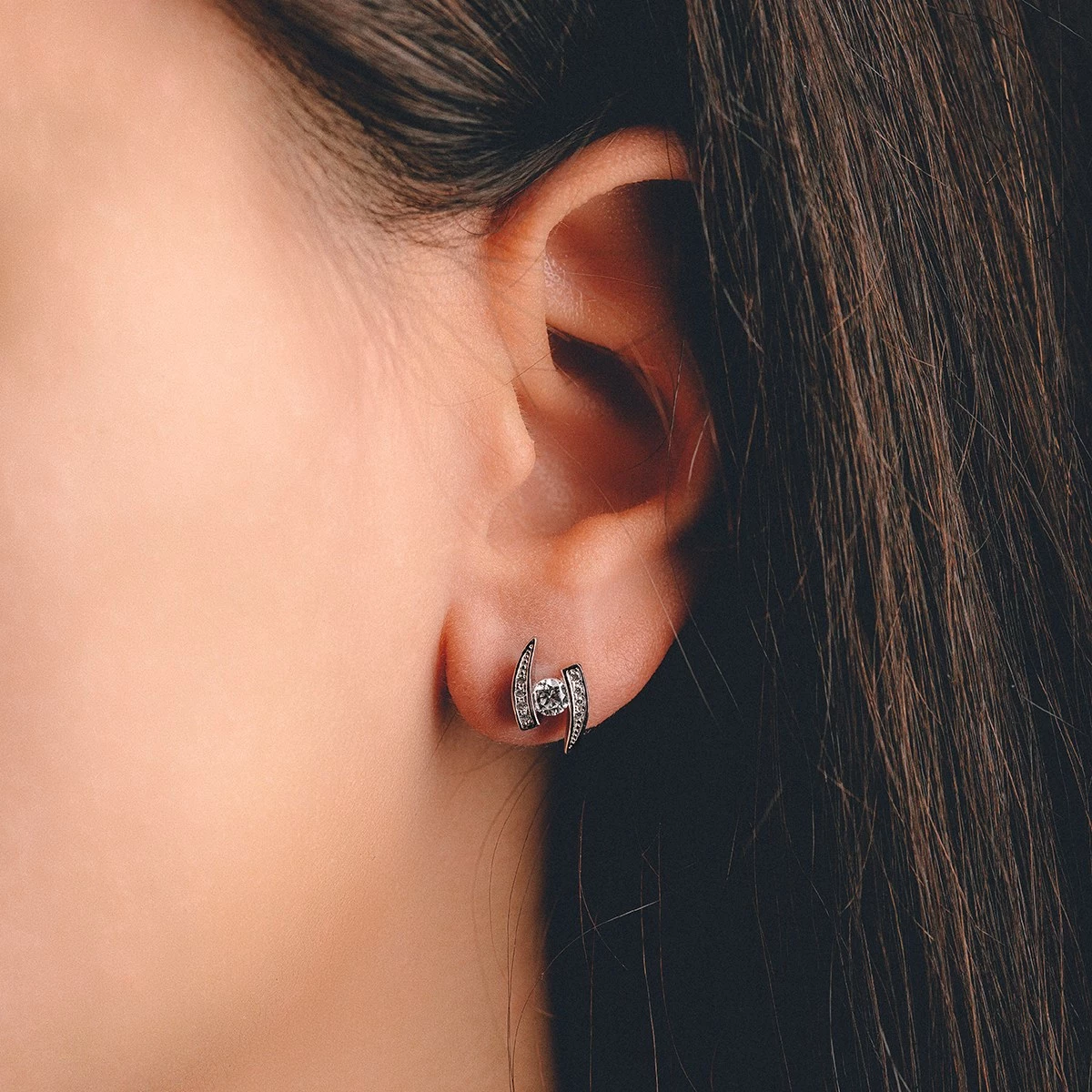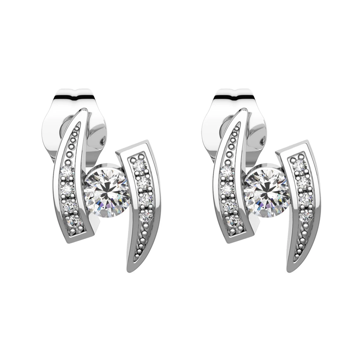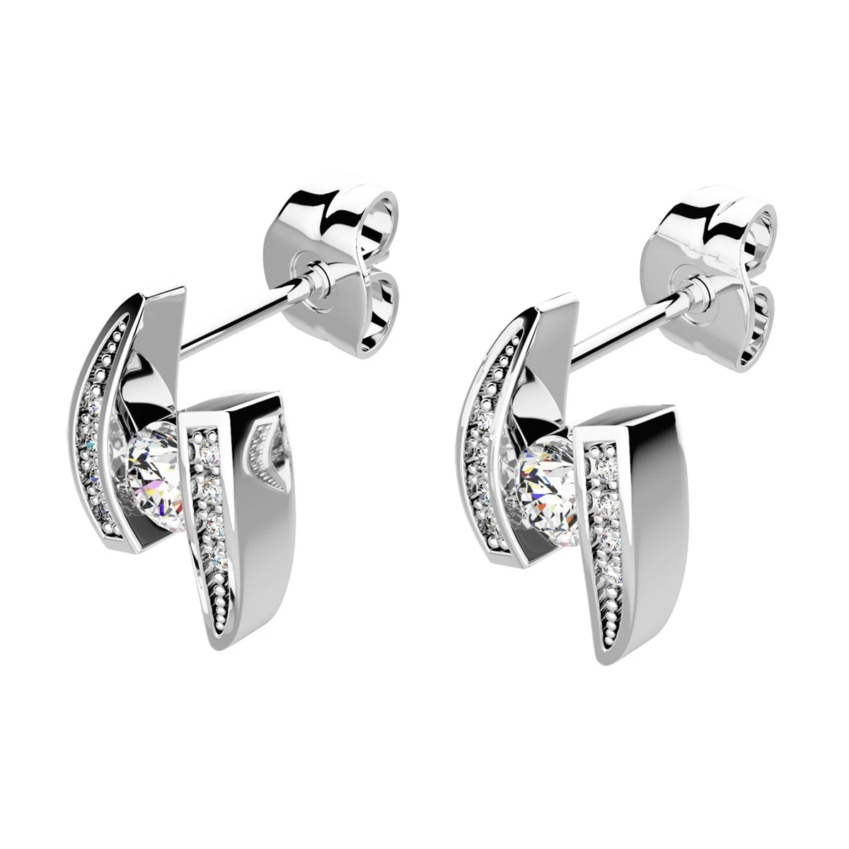 Řadíte se mezi lovce skutečně netradičních, originálních a exkluzivních kousků? Nejste milovníky zajeté klasiky a ráda se zdobíte šperky, které zaujmou na první pohled? Atypický tvar tohoto modelu o výšce 1,3 cm, v šíři 0,9 cm a hloubce 0,4 cm bude příjemnou ozdobou vaší tváře. Váha tohoto šperku jsou 2g a každou z náušnic zdobí jeden středový zirkon velikosti 3,5 mm a 8 menších velikosti 1 mm. Sbalit popis