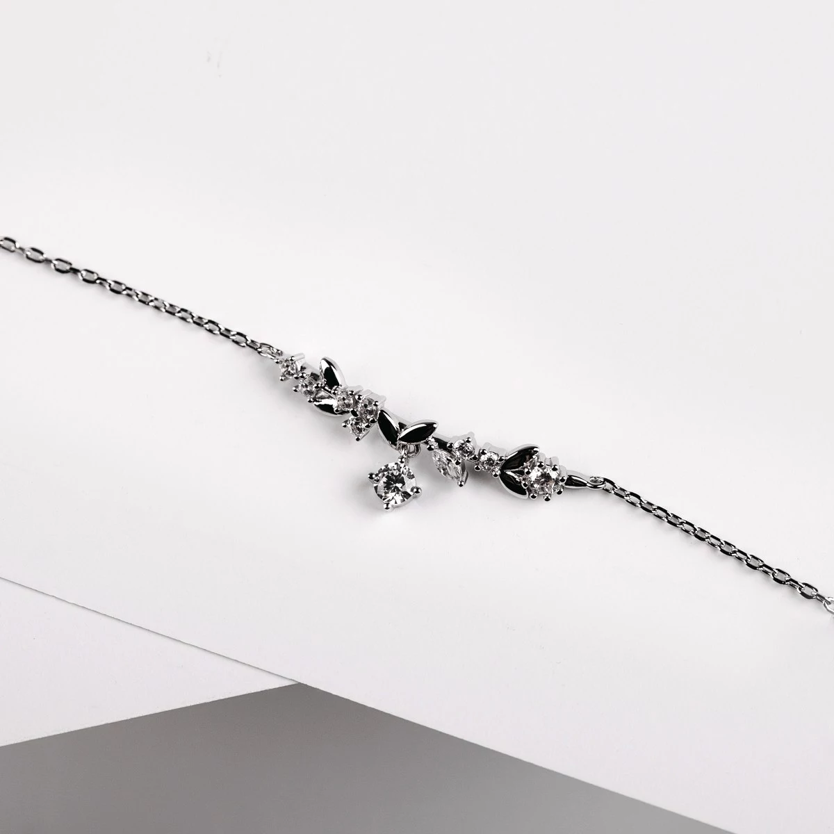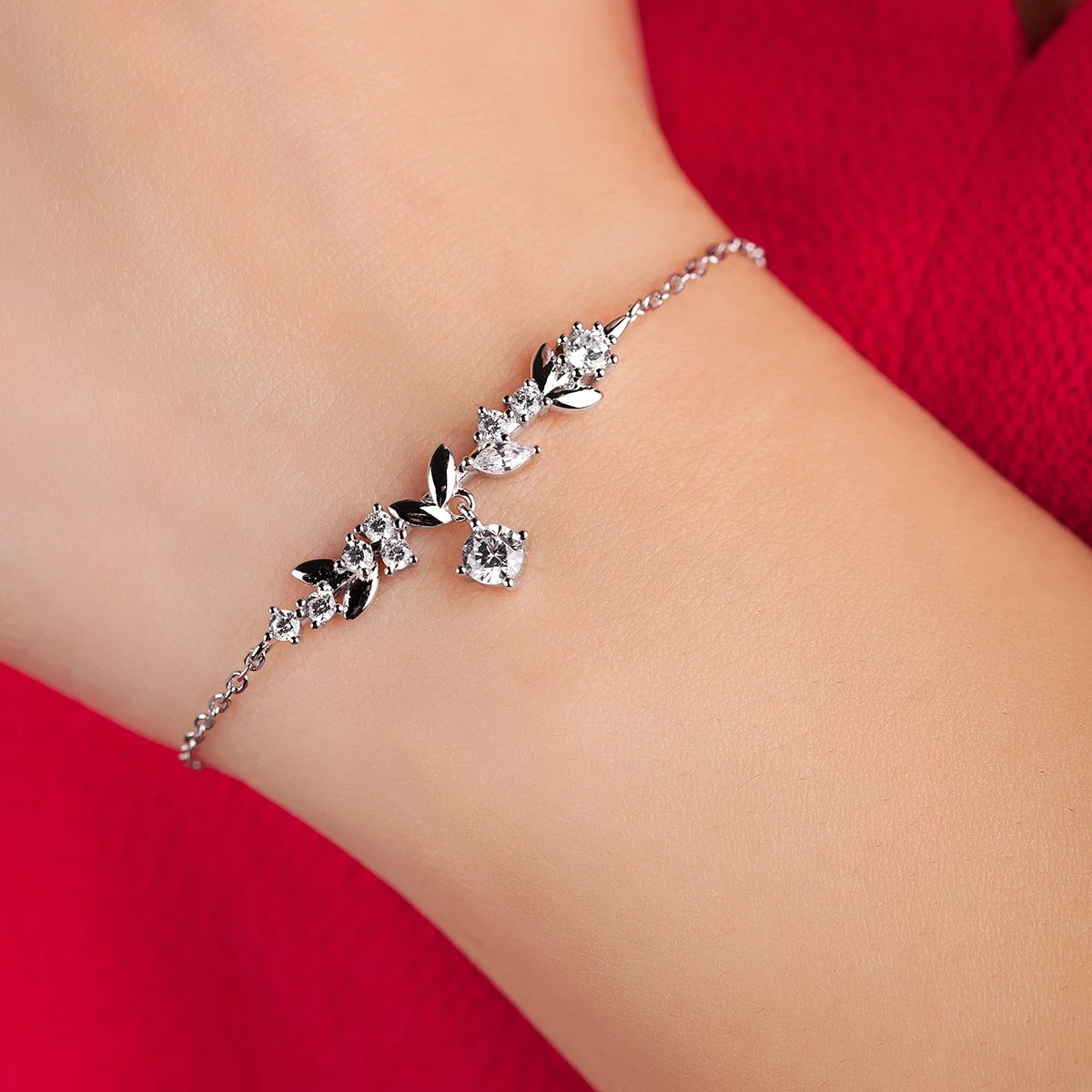 Náramek, který svým leskem okouzlí každou něžnou ženu je ozdoben 10 zirkony o velikostech 4, 3,5, 3, a 2 mm. Osazení kamenů připomíná lístečky s rozkvětlými květy ve velikosti 3,5 x 1 cm. Náramek je k dispozici ve velikostech 15,5 cm + 3 cm a 17,5 cm + 5 cm. Sbalit popis