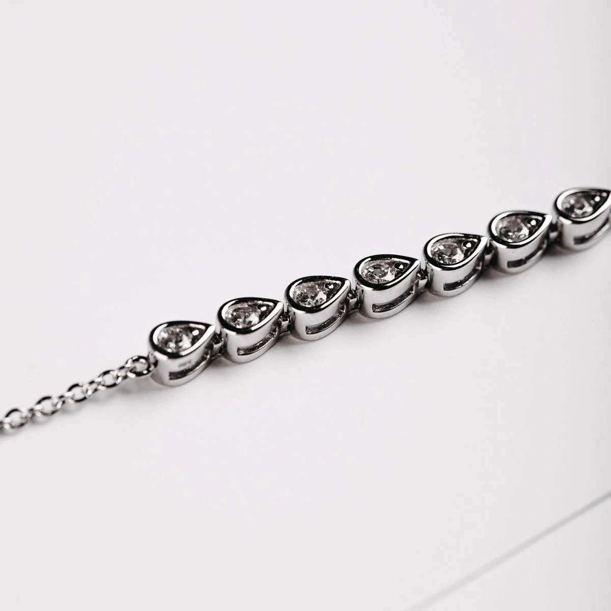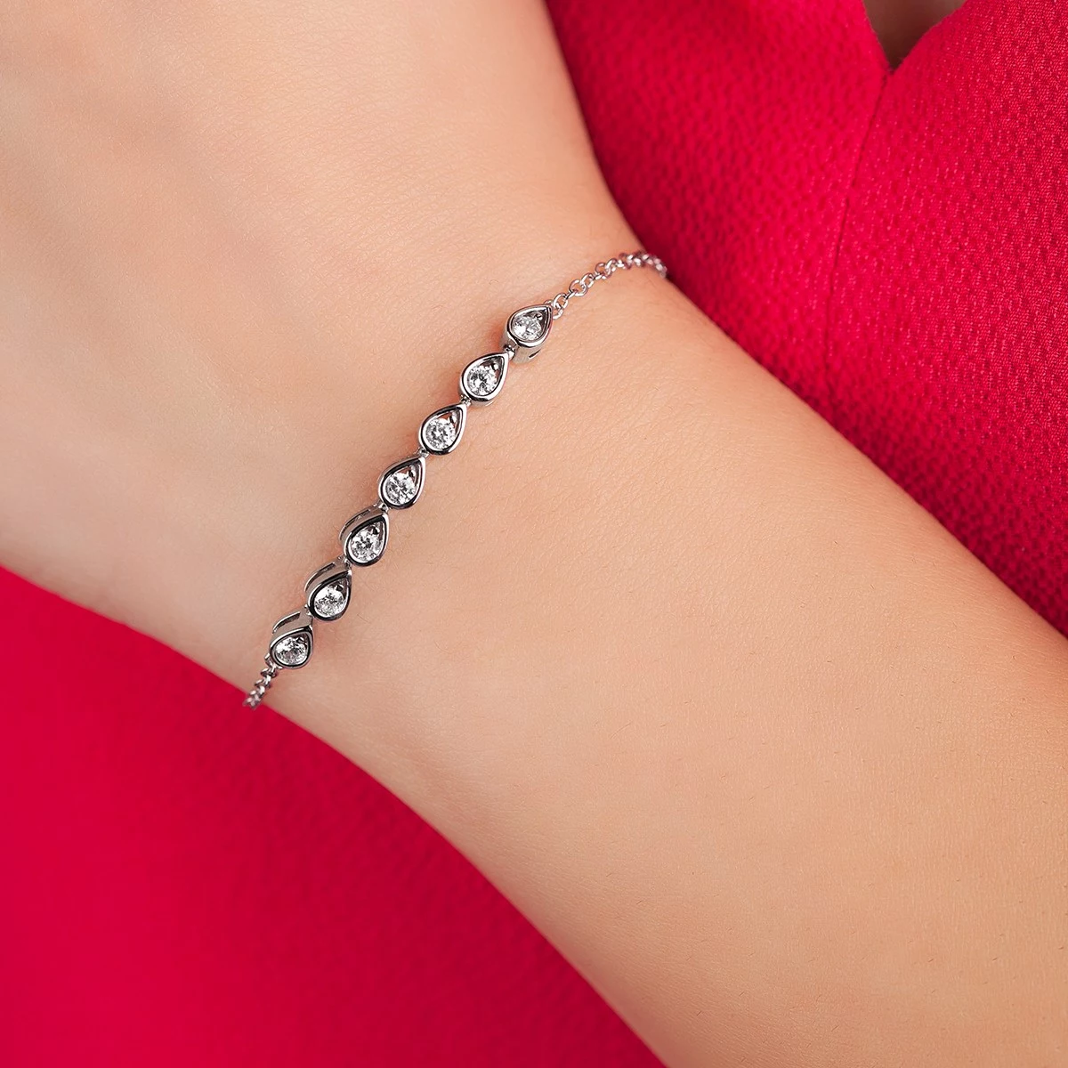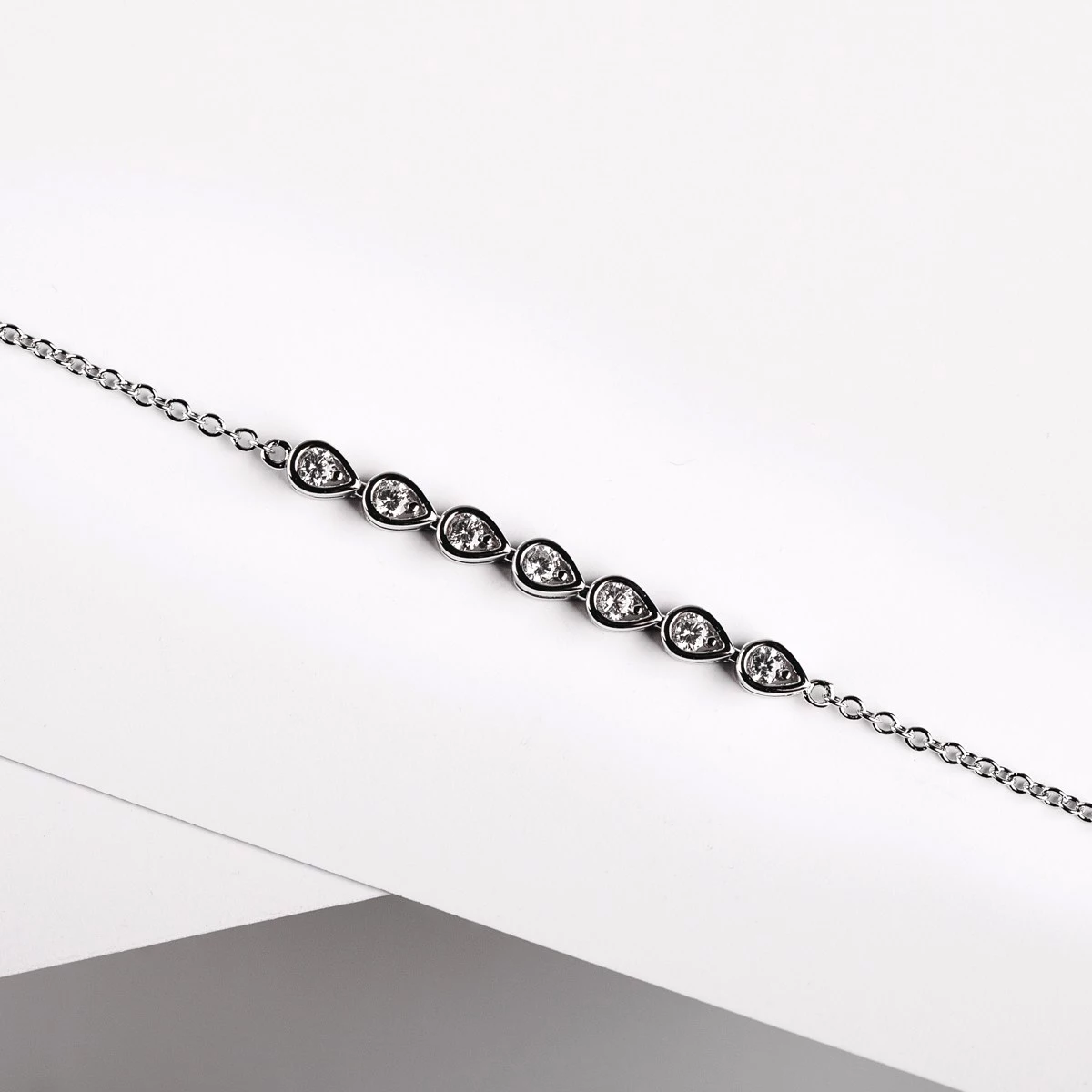 Náramek Foxi ze stříbra o velikosti 3,7 x 0,3 cm, který na vašem zápěstí díky pomyslným "kapkám" s kameny nikdo nepřehlédne. Decentně jej zdobí 7 zirkonů o velikosti 2,5 mm. Náramek je k dispozici ve velikostech 15,5 cm + 3 cm a 17,5 cm + 5 cm. Kompletní sadu je možné taky doplnit o náušnice Tori či náhrdelník Marika, jelikož mají stejný design. Sbalit popis