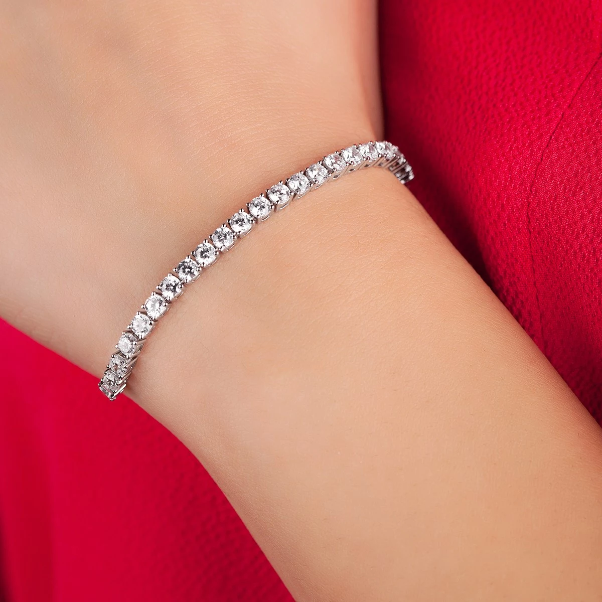 Náramek Venis ze stříbra na Vašem zápěstí díky třpytivým kamenům nikdo nepřehlédne. Tento náramek zdobí 23 zirkonů o velikosti 3 mm. Rozměr tohoto kamínkového zdobení je 7,5 x 0,3 cm. Náramek je k dispozici ve velikostech 15,5 cm + 3 cm a 17,5 cm + 5 cm. Sbalit popis
