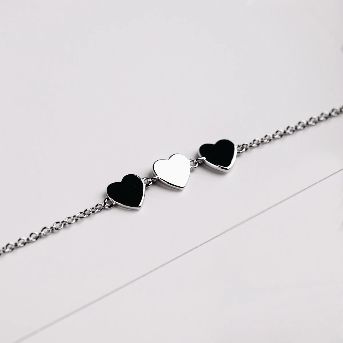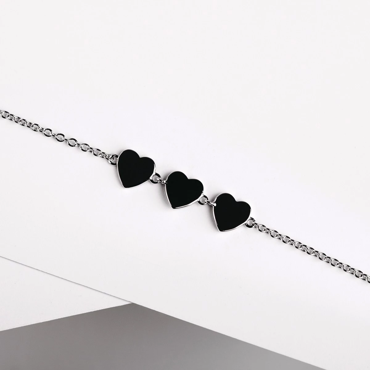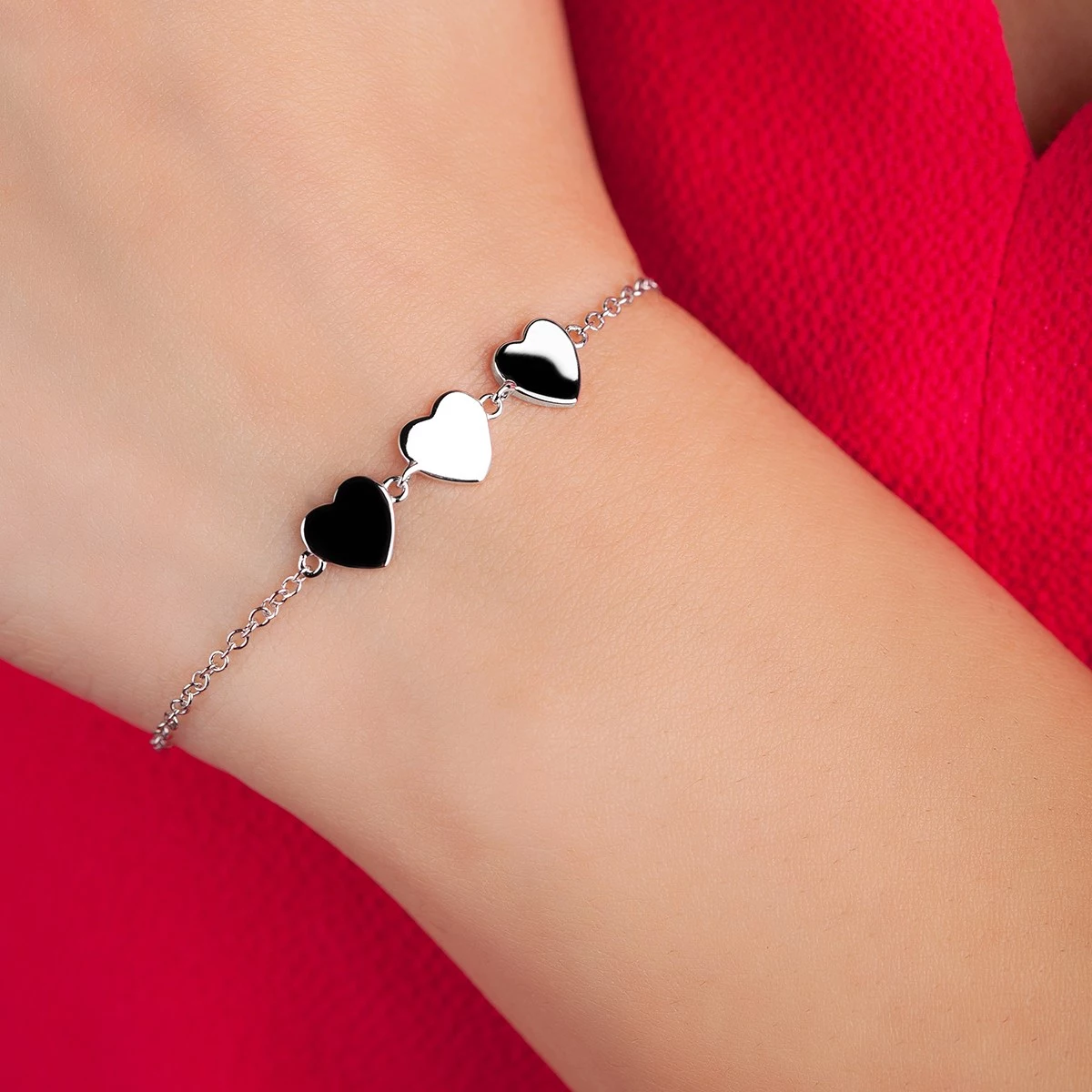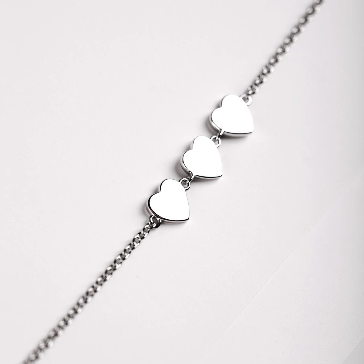 Náramek Marly ze stříbra na Vašem zápěstí díky ozdobě se třemi srdci nikdo nepřehlédne. Tato srdíčka měří 0,7 x 0,7 cm a jejich tloušťka je 0,1 cm. Náramek je k dispozici ve velikostech 15,5 cm + 3 cm a 17,5 cm + 5 cm. Sbalit popis