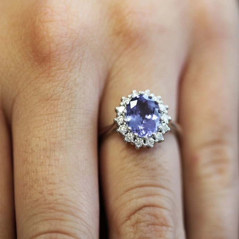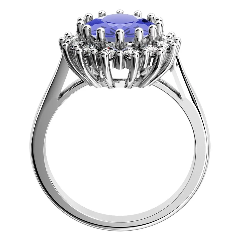 Přepychový zásnubní prsten Megan je vyroben z bílého zlata. Centrální kámen nazýván tanzanit je oválného tvaru o rozměru 10x8 mm. Pyšní se navíc nádhernou modrou barvou kvality AAA, disponuje 2,850 karáty (ct.) a čistotou IF. Okolních 14 briliantů kvality Si disponuje velikostí 2 mm. Pokud má Vaše přítelkyně ráda extravaganci anebo ji chcete věnovat něco opravdu výjimečného, tak neváhejte. Sbalit popis