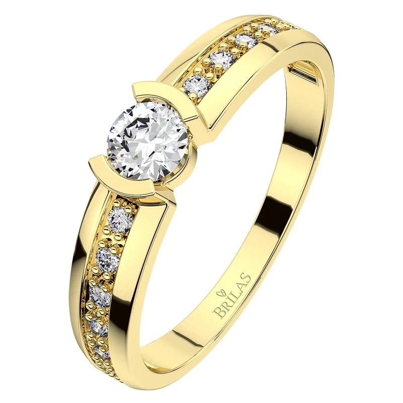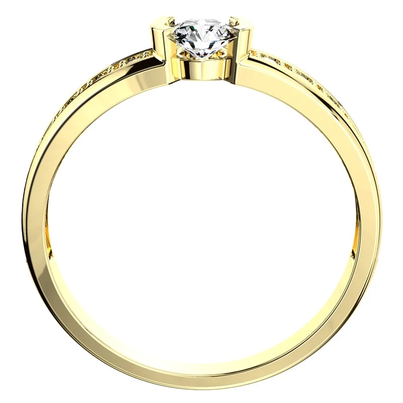 Exkluzivita a jemnost v jednom, tak to je zásnubní prsten Ivone ze žlutého zlata. Prsten je zdoben jedním středovým zirkonem velikosti 4,25 mm a 14‑ti postranními kameny ve velikosti 1,25 mm. Zásnubáček, se kterým bude Vaše láska nepřehlédnutelná a na který jistě odpoví ANO! Sbalit popis