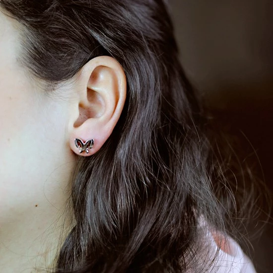 Jemné stříbrné náušnice zdobené vzácnými kameny rozněžní každou duši. Drobné náušnice ve tvaru motýla, jehož křídla jsou ozdobena nádhernými kameny, jsou vhodné jak pro dospělé, tak potěší i ty nejmenší. Motýl symbolizuje změnu, duši, svobodu, radost a kreativitu. Skvělý dárek pro někoho z vašich nejbližších koho tato symbolika přesně vystihuje. Celková váha šperku včetně kamenů činí 2,70 g, z čehož váha kamenů je 0,50 ct. Uzávěr je ve tvaru puzety. Rozměr náušnic je 1 cm x 0,8 cm. Sbalit popis