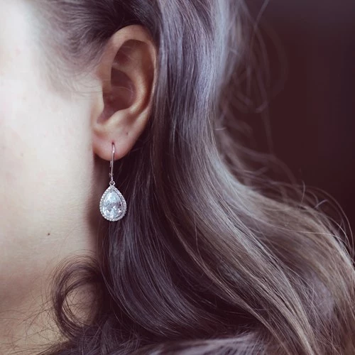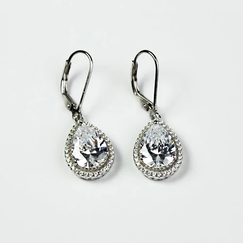 Stříbrné náušnice Chan patří nepopiratelně mezi elegantní a noblesní kousky z naší nabídky. Romantické visací náušnice mají tvar slzy nebo kapky. Dominuje jim centrální bílý zirkon zdobený po stranách zirkony malými. Celková váha šperku včetně kamenů činí 5,2 g a má rozměry 1,9 x 1 x 0, 5 cm plus uzávěr, který je ve tvaru klapky. Něžný šperk pro něžnou bytost. Sbalit popis